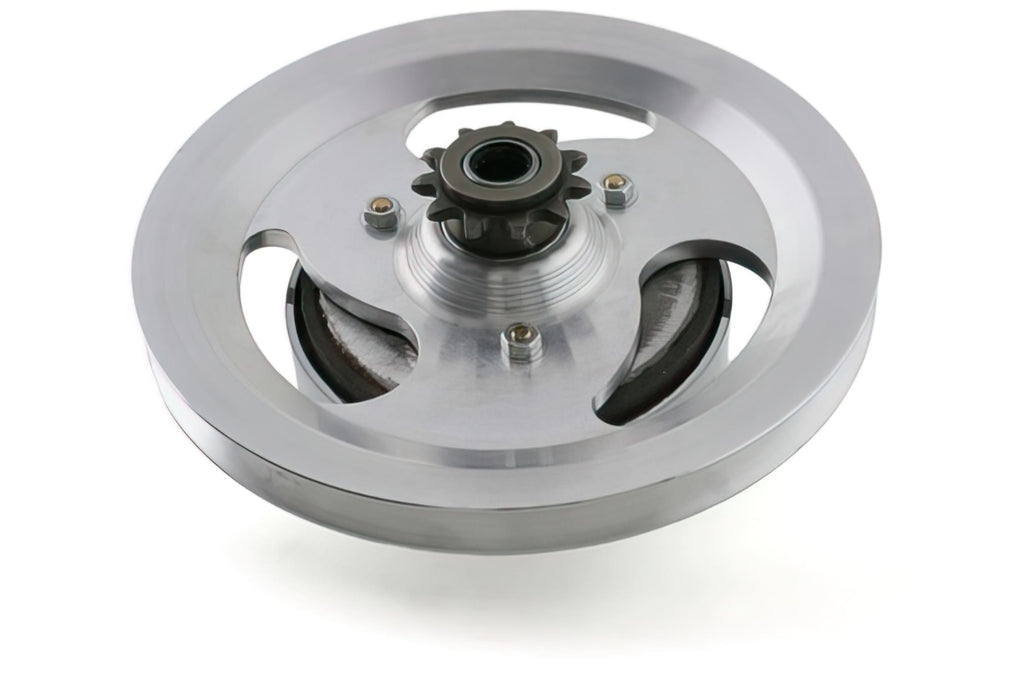 Doppler ER2 pulley, MBK 51 for moped. Aluminum pulley with integrated 3-claw clutch.